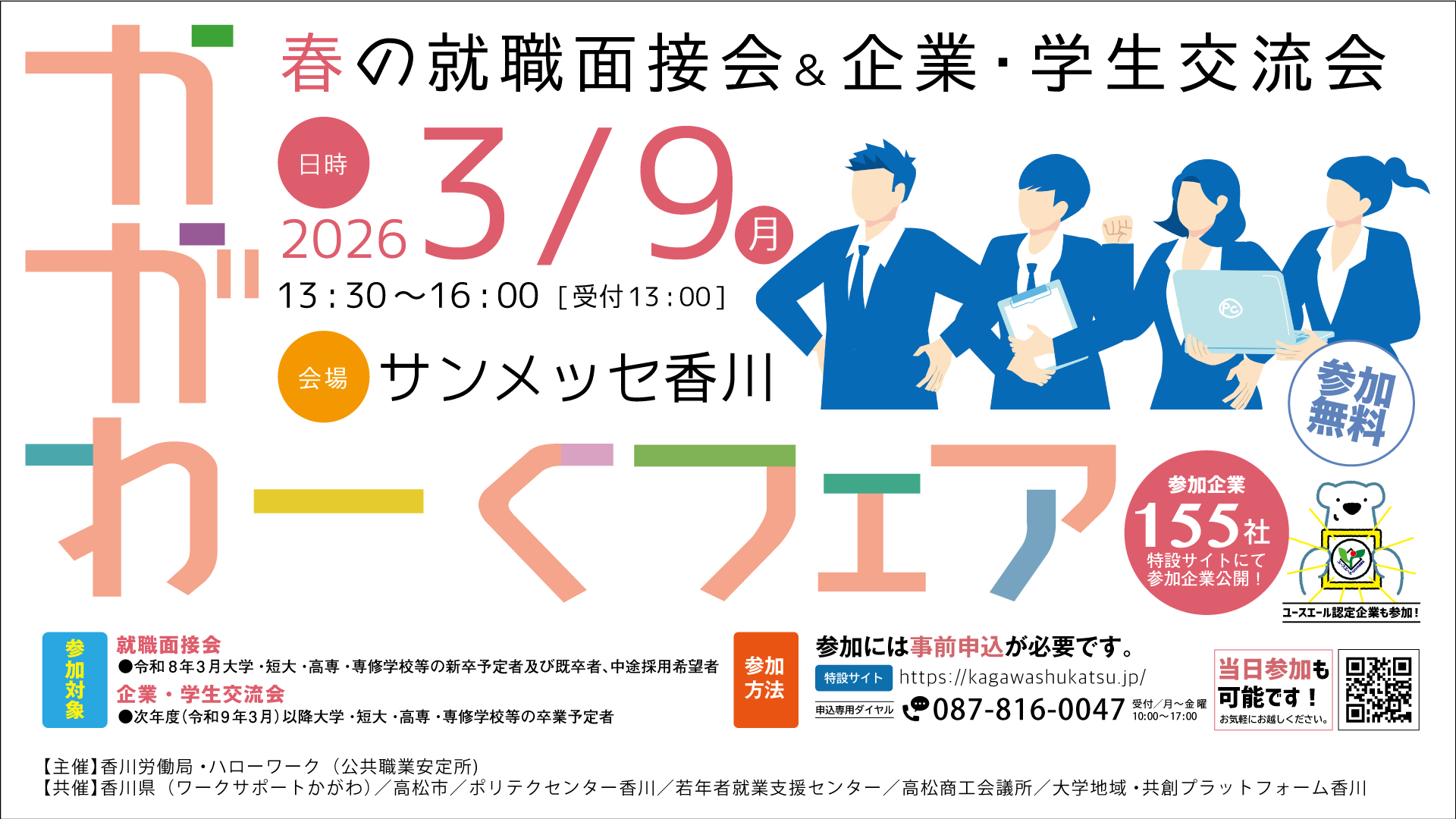3月9日開催の「かがわーくフェア(春の就職面接会&企業・学生交流会)」に参加します
