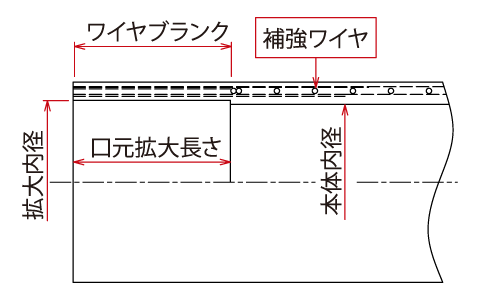 - 口元拡大加工・口元端面のシールエンド加工もご対応可。金具取付(バンド締め・加締め)も、ご対応検討いたします。