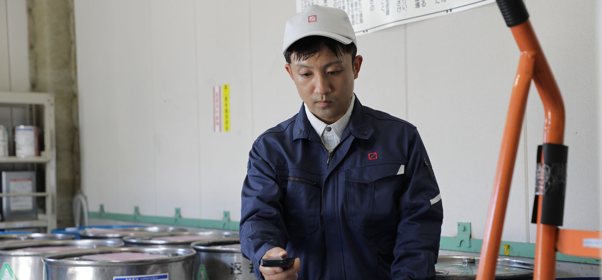 現在は資材設備部に配属され、原材料の調達や各部署への配送を行っています。材料が不足すれば最悪生産が止まってしまうことも・・・。それだけに原材料の在庫管理は非常に重要な役割です。原材料の安定確保が難しくなってきている中、供給ルートを確保することも資材課の大切なミッションの一つです。